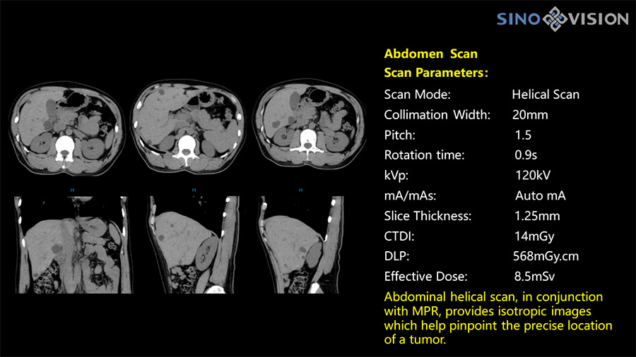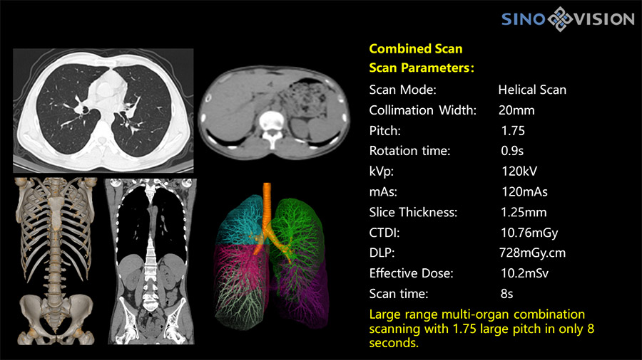 - Точное автоматическое определения диапазонов сканирования: голова, шея, грудь, живот, таз.