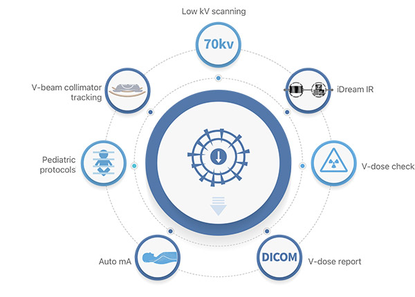 - Функции V-beam и iDream для снижения дозы в режиме реального времени.