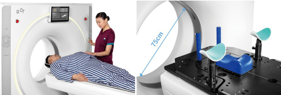 Благодаря широкому, 75 см, Гентри томограф AlphaCT 358 Plus можно использовать практически во всех областях исследований, включая хирургию с использованием дополнительных приспособлений.