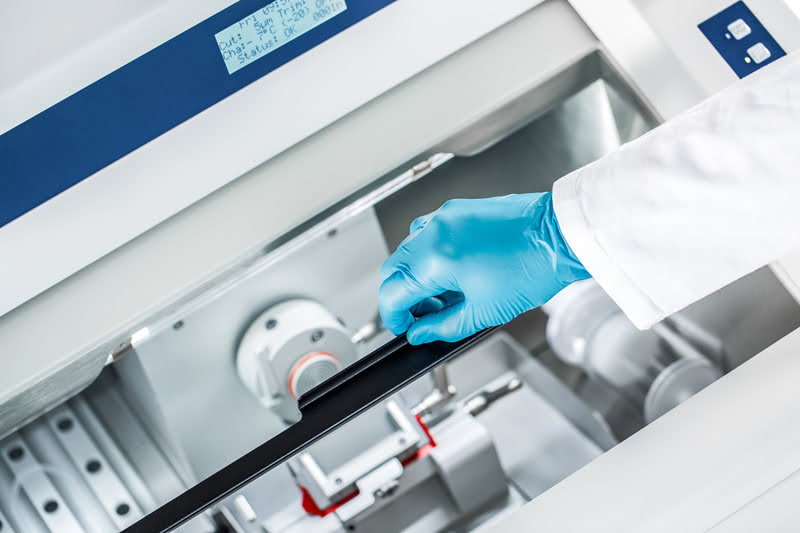 Для подготовки ровных срезов замороженного исследовательского материала без предварительной фиксации применяют криостаты. Они обеспечивают точность резки, ровность среза и безопасность специалистов.