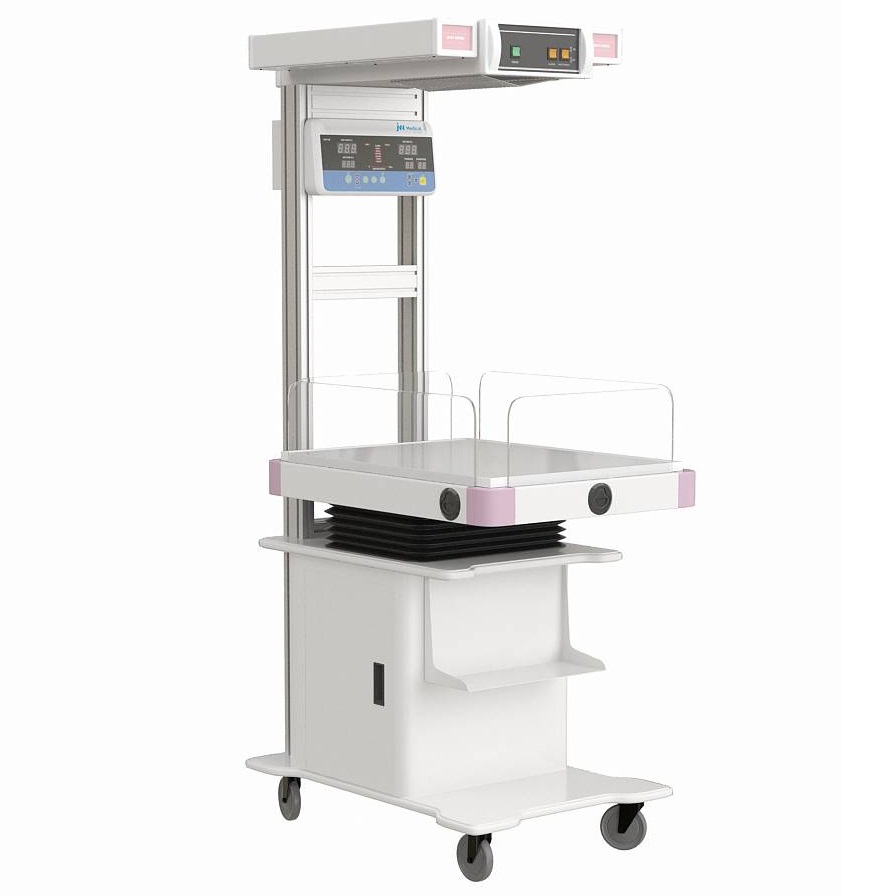 Неонатальный обогреватель Comen BQ80A с функцией фототерапии подходит для отделений реанимации и интенсивной терапии новорождённых, имеет функцию регулировки наклона стола и ЖК-дисплея, позволяет взвешивать детей и проводить рентгенодиагностику на месте, поддерживает оптимальную температуру и влажность.