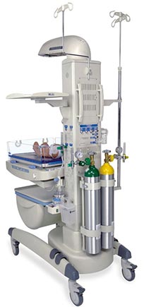 Система для новорождённых Dräger Resuscitaire RW: ИВЛ ПДКВ (PEEP), система равномерного нагрева и поддержания температуры, автоматизация процесса, вакуумный отсос.