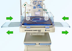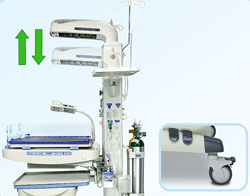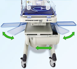 Система Ampla 2085 обеспечивает удобный и быстрый доступ к новорожденному. Поскольку система открыта, детям не вредят колебания температуры и влажности, которые могут быть в закрытой системе при открывании окошек. Есть три варианта дисплея: цветной, монохромный и цифровой. Цветной и монохромный дисплеи обладают обширными возможностями отображения данных. Имеется три варианта ложа: электрическое и механическое с откидывающимися бортиками, а также литая акриловая корзина. Есть большое количество опций и дополнительных принадлежностей. Благодаря обширным возможностям модификации вы можете собрать оптимально подходящую модель.